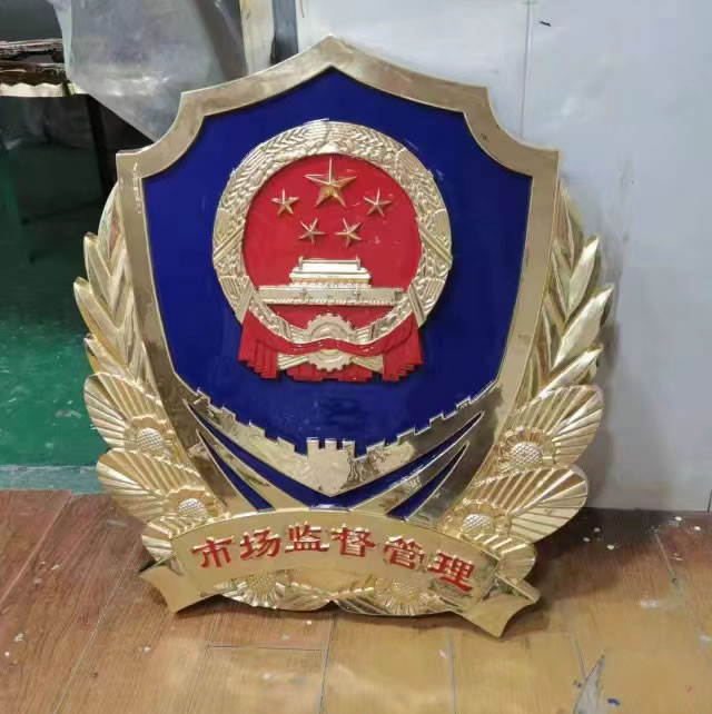 市场监督管理徽图案由国徽﹑融合之盾、长城、向阳花、松枝,橄榄枝﹑飘带等图形元素构成,飘带上嵌“市场监督管理”字样。